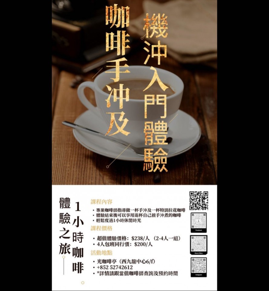 消費券優惠唔好停💥 ☕️*咖啡體驗課程大特惠* ⭐️歡迎個人、三五知己、團體、機構包班上堂~「網上優惠A100」