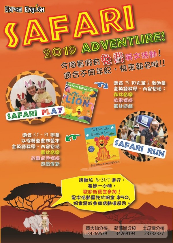 活動由外籍老師以全英語教學,有叢林音樂🎶、故事探險和遊戲🎉,不只舊生,新生同樣可以參加哦!🤩