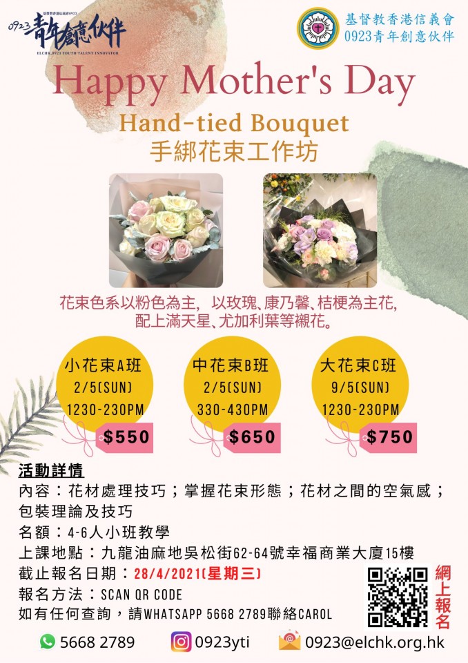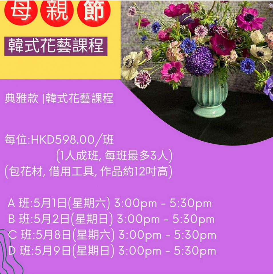 分別有三班不同size嘅花束班供選擇,大家可以根據你想送嘅花束大小而決定報邊一堂🤓🤓導師由淺入深教授,歡迎沒有花藝經驗嘅你參加😊