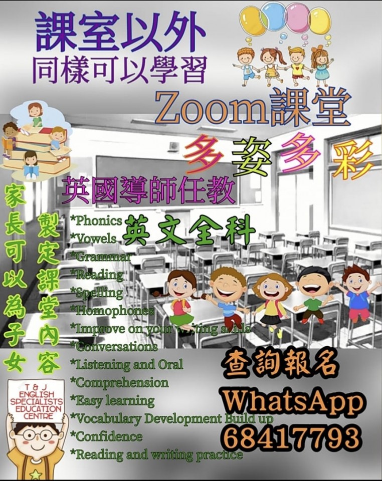 現Antonia Chung開辦離岸網上即時視像教學課程,並以Zoom平台教授,以一對一形式授教英文及英語課程,根據學生需要而設計教學程序,並免費提供補充練習作業以作自修溫習,教學方面可獨立選修或多項選揀組合: