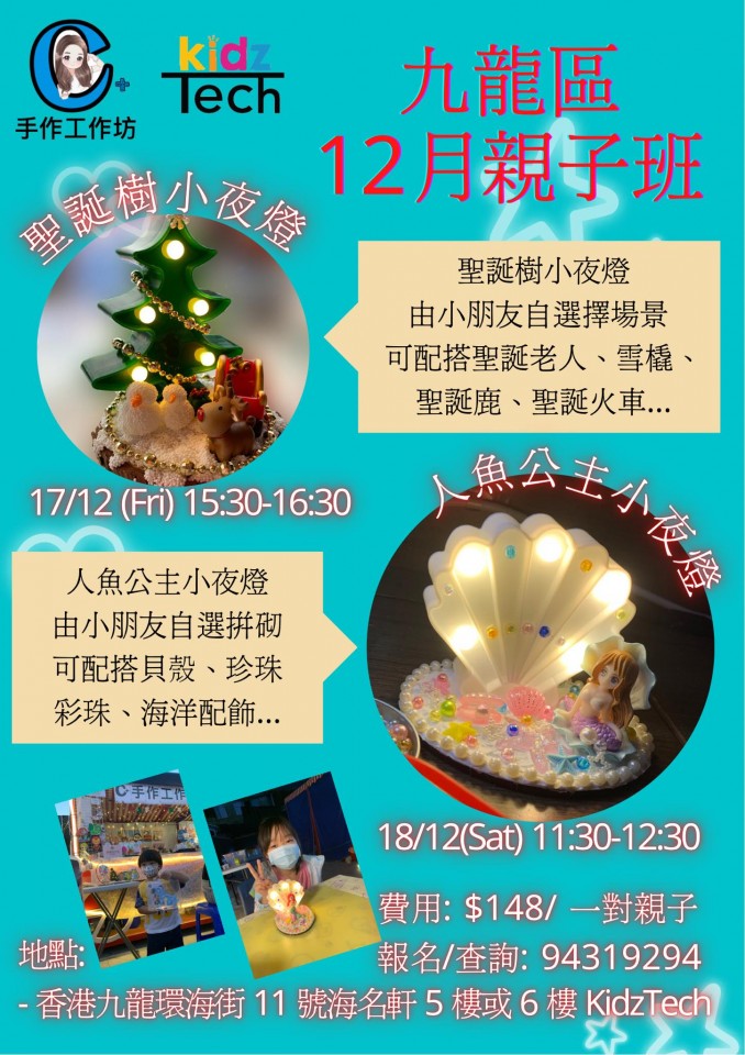 要大家久等啦!好多住九龍區嘅朋友都同我哋講,問我哋幾時會係九龍區開班做小夜燈🧜🏻‍♀️🎄終於有啦!😍12月特別係九龍區開設兩場小夜燈親子班