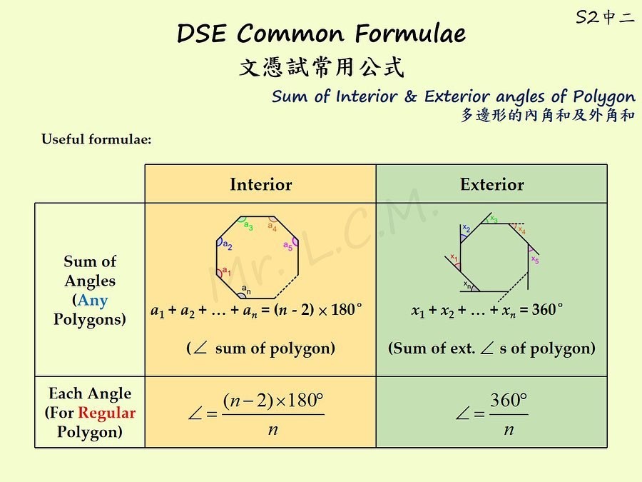 [DSE公式] 多邊形內角和及外角和 Sum of Interior & Exterior Angles of Polygon