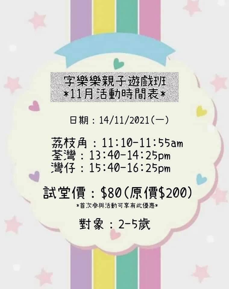 費用:$650/ 2堂 (早鳥優惠 15/11前報名)