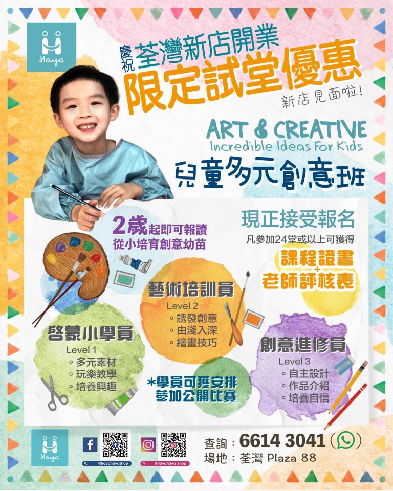 創意由小培訓,Haya 注重多元化的藝術創作,啟發小朋友創意思維,多嘗試,多思考,多表達,藝術與生活結合