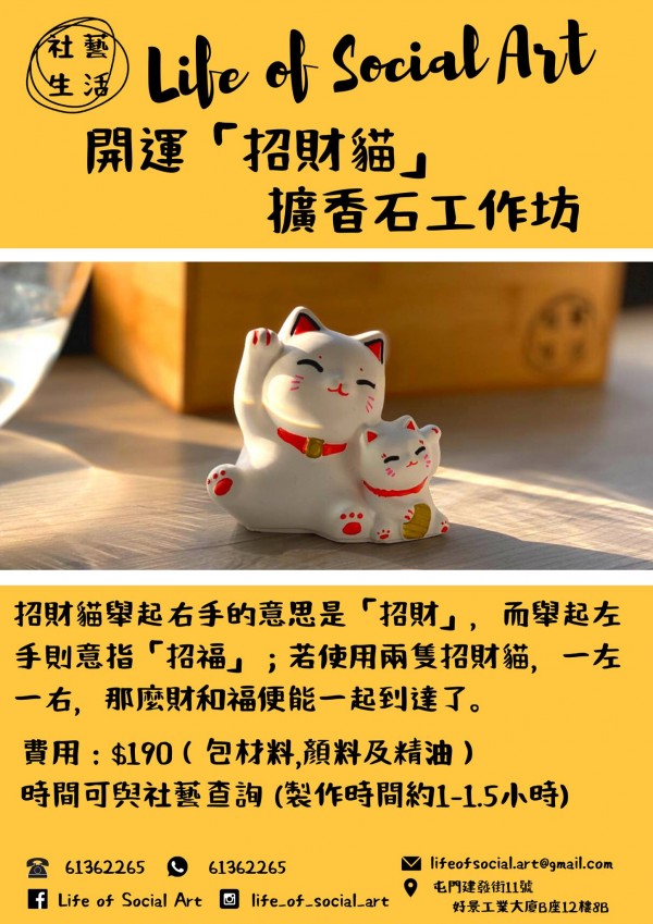 由混合材料、倒模、脫模、打磨及上色全由參加者自己人手製作,貓的顏色及花紋可依個人喜好繪製。