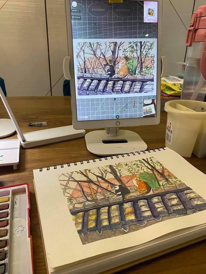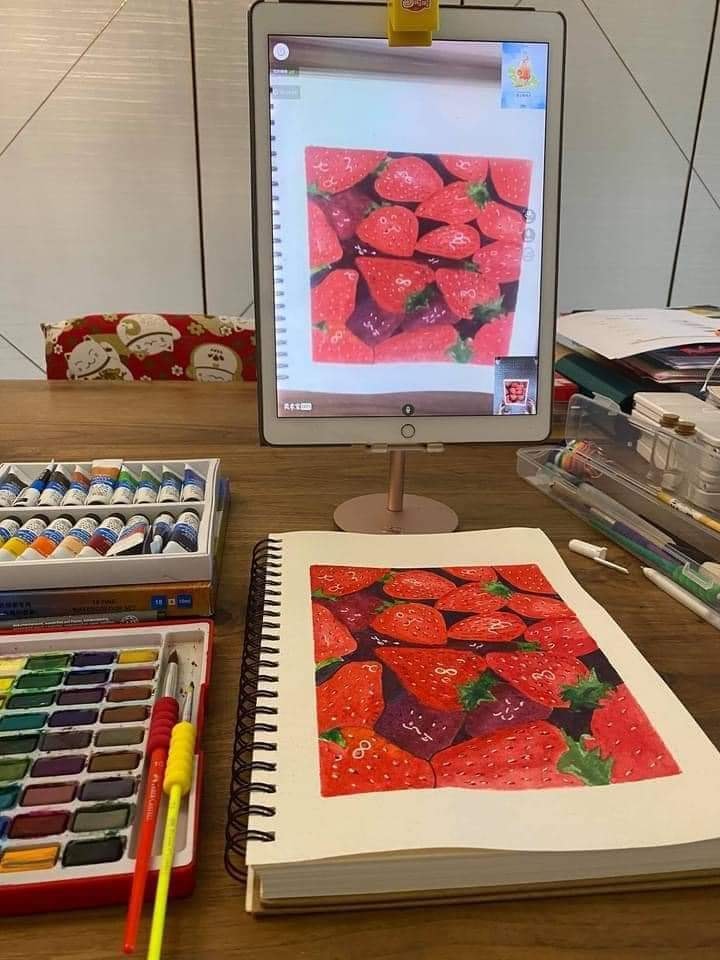 自己從每一幅圖畫學好每一個基礎,學習不同的線條、形狀,感受不同的顏料、素材