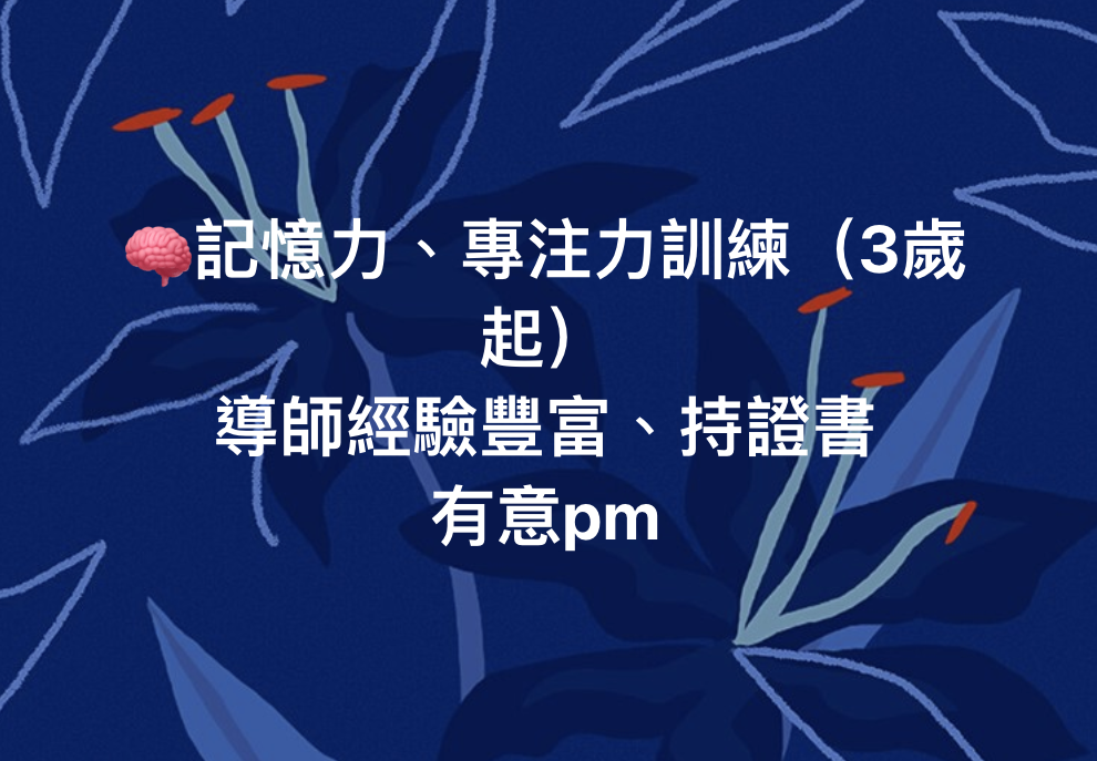 記憶力、專注力訓練(3歲起)導師經驗豐富、持證書有意pm